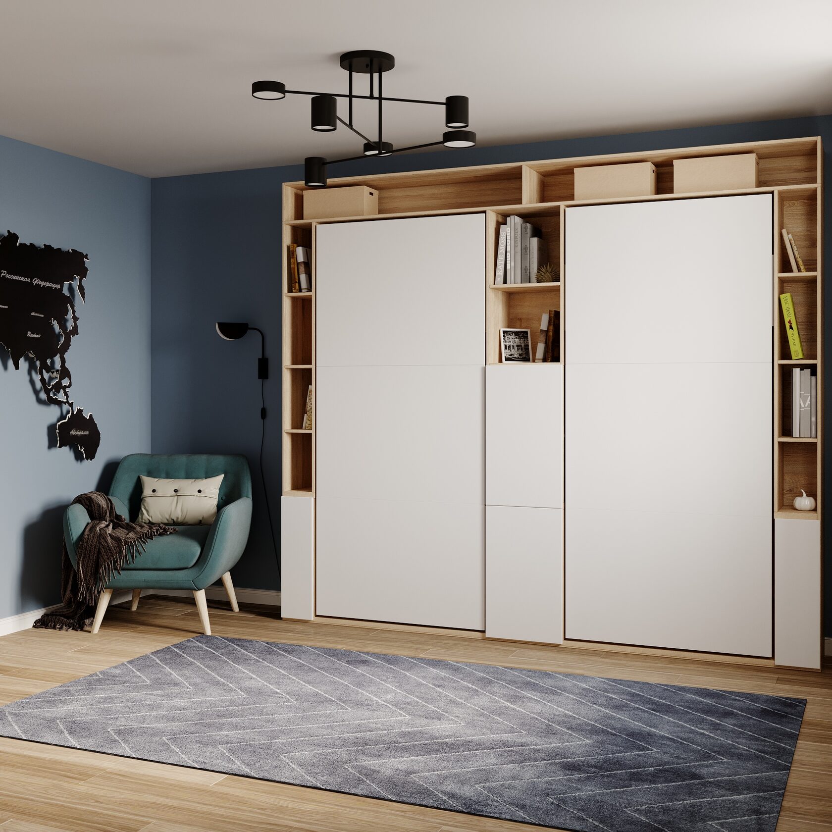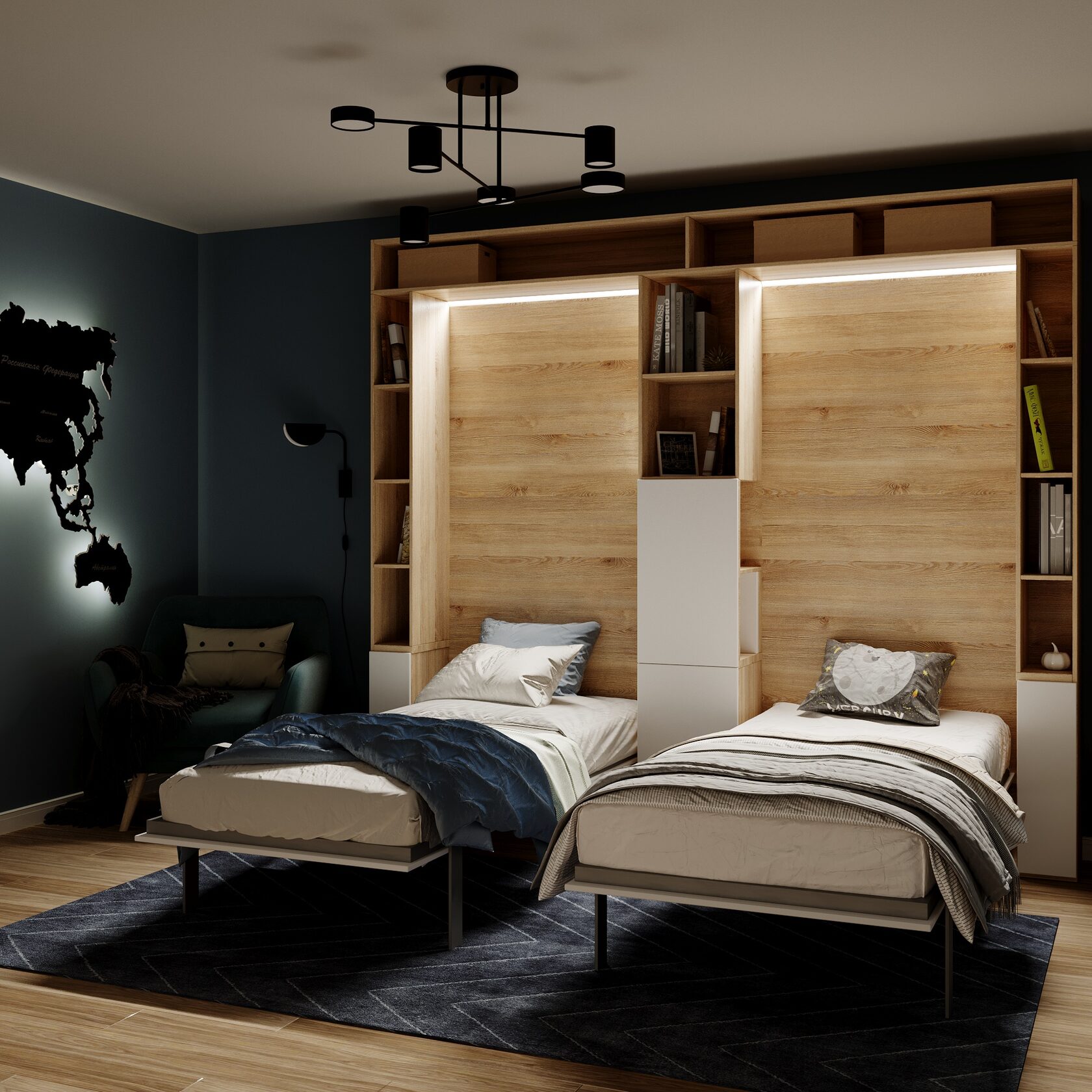 Удобная спальня превращается в удобную гостиную или игровую за 10 секунд. Никаких компромиссов и идеальный порядок.